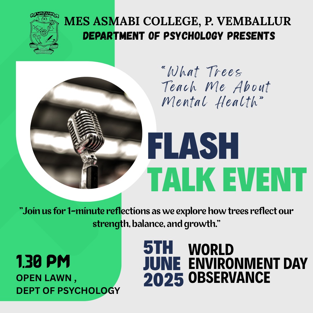 The department of psychology of MES Asmabi College P. Vemballur was established in the year 2015, with an aim of meeting demands of current society in moulding competent mental health professionals. It offers three year course in psychology. With Sri Lathif Penath as the founder head of the department, the first batch had a student’s strength of 21 and they graduated in 2018 with a pass percentage of 87. Department of Psychology conducts various socially oriented programs along with the academic programs. We provide training to our students for becoming a better mental health ally on the first hand. The Department recently got involved with community outreach programs, providing basic mental health awareness and free services to the poor and needy ones, along with the Student Counselling Services.